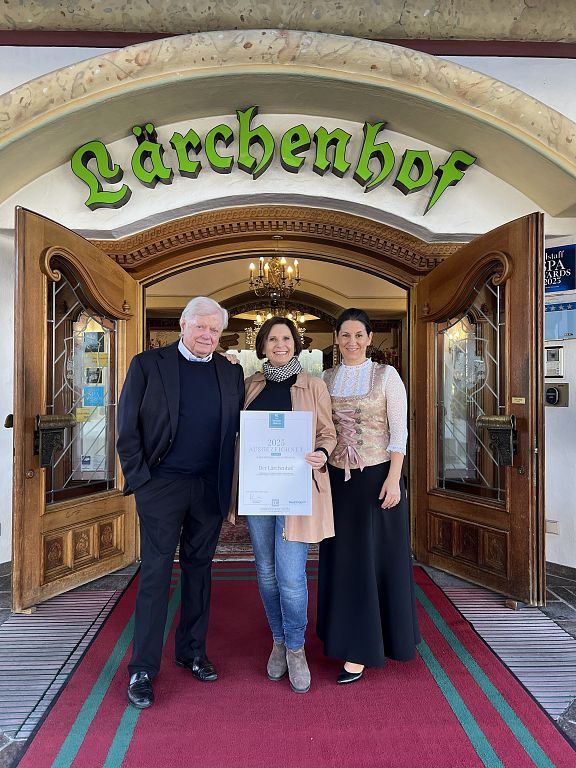 Große Freude über diese Ehrung herrscht bei Lärchenhof-Inhaber Martin Unterrainer und Hoteldirektorin Melissa Mathé: „Unter den zahlreichen Anerkennungen, Urkunden und Awards für unseren Hotelbetrieb ist diese Auszeichnung durch den renommierten Connoisseur Circle für unser Haus besonders wertvoll“.