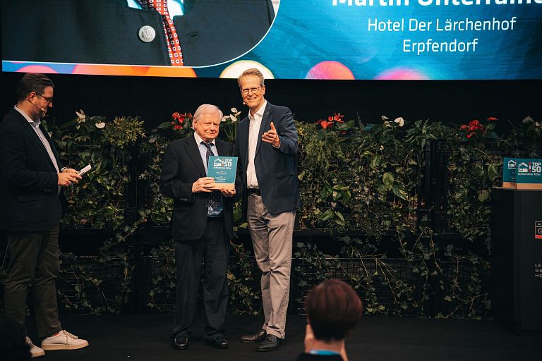 Im Rahmen einer feierlichen Preisverleihung auf der Fachmesse „Alles für den Gast“ wurden in Salzburg herausragende Hoteliers in den exklusiven Kreis der TOP50 aufgenommen. Diese Auszeichnung für Spitzenleistung und unternehmerische Exzellenz in der österreichischen Hotellerie wurde Lärchenhof-Inhaber Martin Unterrainer bereits zum zweiten Mal verliehen.